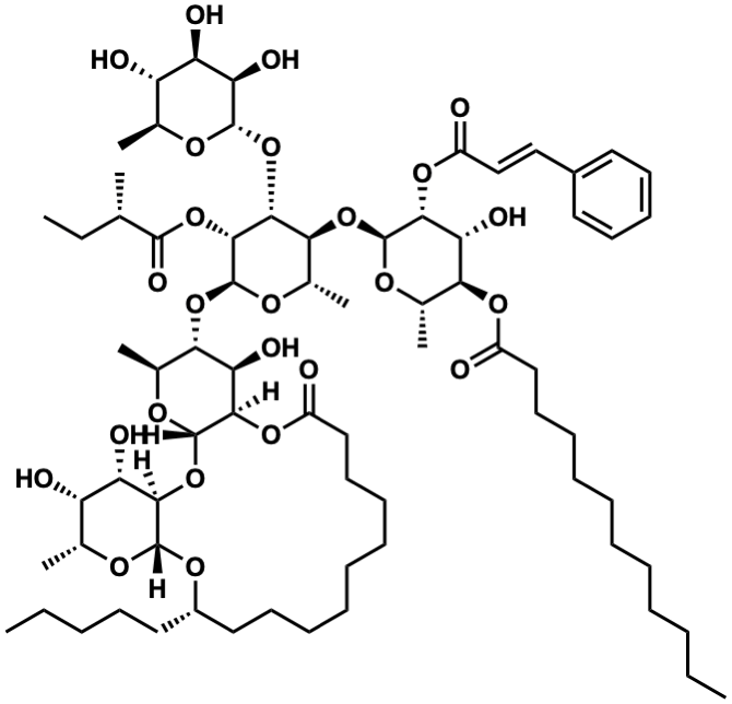 InChI=1S/C71H114O25/c1-10-13-15-16-17-20-23-30-36-48(72)89-58-43(7)85-69(62(56(58)80)91-50(74)39-38-46-32-27-25-28-33-46)94-60-45(9)87-71(65(92-66(82)40(4)12-3)64(60)96-67-55(79)53(77)51(75)41(5)83-67)93-59-44(8)86-70-63(57(59)81)90-49(73)37-31-24-21-18-19-22-29-35-47(34-26-14-11-2)88-68-61(95-70)54(78)52(76)42(6)84-68/h25,27-28,32-33,38-45,47,51-65,67-71,75-81H,10-24,26,29-31,34-37H2,1-9H3/b39-38+/t40-,41-,42+,43-,44-,45-,47-,51-,52-,53+,54-,55+,56+,57+,58-,59-,60-,61+,62+,63+,64+,65+,67-,68-,69-,70-,71-/m0/s1 |
