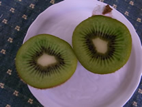 | 食用 | [実]生食。 ビタミンC,E,食物繊維、カリウム、たんぱく質分解酵素アクチニジンを含む。たんぱく質分解酵素アクチニジンは肉や魚料理の消化を促進する。 イチゴを上回るほどビタミンCが豊富。 1個で一日の目標摂取量のほぼ7割を満たし、美肌効果に優れる 表面のうぶ毛がきれいに生えそろっているもの。皮にシミや傷がないものが良品。 かるく握ったときに弾力を感じるものが新鮮。 保存:貯蔵性が高く、冷蔵庫で3から4ヶ月保存可能。 つけ合わせのサラダにしたり食後のデザートにして食べれば消化を助けてくれます。 硬いものは購入後、室温に置いて柔らかくしてから食べます。未熟な実はりんごと一緒にポリ袋に入れて常温に置くと早く追熟します。調理の際は果頂部からむきはじめ、周りの皮を全部むき新が硬い場合は切り落とします。 | Edible | [fruit]eaten raw it contains Vitamin C, E, dietary fibers, Potassium, Actinidin. Actinidin is a digestive enzyme which accelerates the digestion of fish or meat. Kiwi fruit contains more Vitamin C than strawberries. One kiwi fruit covers 70% of the recommended vitamin C intake per day for one person and it has a good effect to your skin. Tips to select good kiwi fruit:A good kiwi fruit is fuzzy evenly, without spots or dents on the rind. A fresh fruit maintains elasticity when grasped in a palm. Kiwi fruit can be stored in a refregerator for 3-4months. eaten as side dish or as a dessert , it helps digest meals. Leave unripe fruit in the room temperature, wait until it becomes soft and eat. Being put in a plastic bag with an apple, an unripe fruit ripens faster. how to cook:Start to peel from the top of fruit to the bottom. Cut off the stiff core if necessary. |