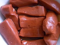 | 食用 | [根]グルコマンナン(腸内の清掃作用、血圧やコレステロール値を下げる効果)、カルシウム 白こんにゃく:こんにゃくの粉だけでつくる 黒こんにゃく:ひじきやあらめなどの海藻粉を入れ、黒くみせている。 タンパク質凝固作用があるので、すきやきにこんにゃくを入れるときは、肉に火を通してから加える。 板こんにゃく:煮物や炒め物などにも使われる一般的なこんにゃく。最近ではアク抜き不要の商品もある。適度な弾力性があってやわらかすぎないものがよい。 こんにゃくいも:3年ほどかけて成長する。こんにゃくいもを切って乾燥させ、製粉した後、水で煮溶かし、消石灰でアクを抜きながら固めるとコンニャクになる。 アクが強いので調理の前には下処理が必要です。煮物なら下ゆで、炒め物ならから炒り、みそ漬けや汁物なら塩でもみ、めん棒で叩く方法がおすすめです。 切り口もひと工夫しましょう。煮物に用いる際は表面積を増やすことで味がしみ込みやすくなります。手でちぎるか表面に格子状の切り目を入れると効果的です。 保存:水または袋に入っている石灰水と一緒に冷蔵庫へ。 | Edible | [part used:roots]The root contains glucomannan which helps increase bowel movements and lower blood pressure and cholesterol level. It also contains calsium. White konjac gel is made from only konjac flour. Black konjac is coloured by seeweed powder made from edible algae. Konjac coagulates protein. To keep meat from hardening, parboiling konjac before adding to Sukiyaki pan is a way recommended. Rectangle konjac is commonly used for recipes such as Nimono(a dish simmered in soy sauce and sugar) or stir-fry. Some konjac products recently sold need no trouble of parboiling. Good konjac is chewy and resilient. The corm takes 3 years to grow suitable for making konjac gel. The corm is cut, dried, and floured. The flour is dissolved in the water and boiled, with lime water added to remove the harshness. The liquid gel is getting hard to be konjac gel. Konjac needs preparation before cooking because of the harshness. The ways to remove the harshness are parboiling, frying, or rubbing with salt and beating with a rolling pin. The tip for making Nimono:tear konjac or make grid-like cuts on the surface so that the konjac soak up seasonings. the storage Put konjac gel in water or limewater and keep in a refrigerator. |