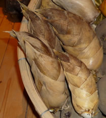 | 概説 | [品種]淡竹(はちく)、大名たけのこ、根曲がり竹、孟宗竹(もうそうちく)、麻竹、布袋竹、寒竹、真竹(まだけ) 竹の幼茎で一般に良く利用する孟宗竹は肉質がやわらかく品質がよい。 淡竹はえぐみが少ない。 真竹はあくがつよい。 昔から竹は笹団子(ちまきなど)や肉を包む竹皮などに使用されてきたが、孟宗竹には強い抗菌物質が存在する事が認められた。 淡竹、根曲がり竹(東北、北海道)、大名タケノコ(別名メダケ)、月山竹(柔らかくあく抜きが不要、焼きタケノコ、味噌汁、てんぷらなどに向く)。 | Summary | [cultivars]Hachiku, Daimyo takenoko, Nemagari take, Moso chiku, Asa dake, Hoteitake, Kan dake, Madake. Moso take is soft in texture and good in quality which is generally used while young. Hachiku in the species which is less harsh in taste. Madake is astringent. The bamboo peel has been used to roll mochi cake or dampling for long time. Moso chiku was confirmed that it has a strong antibacterial substance. |