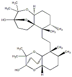 83.33 | C00012948 | Rudbeckiolide [3aR-[3aalpha,4abeta,7beta,9aalpha,10R*(3'aR*,5'S*,8'aR*,9'aR*)]]-3a,3'a,5',6',7,7',8',8'a,9,9',9a,9'a-Dodecahydro-5,5',8,8'a-tetramethyl-3-methylenespiro[4H-4a,7-ethanoazuleno[6,5-b]furan-10,3'(2'H)-naphtho[2,3-b]furan]-2,2'(3H)-dione |