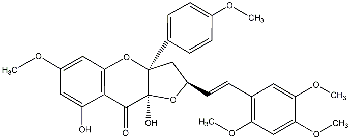 89.41 | C00014403 | Rel-5-hydroxy-7,4'-dimethoxy-2''S-(2,4,5-trimethoxy-E-styryl)-tetrahydrofuro[4''R,5''R:2,3]flavanonol | ![]() |
