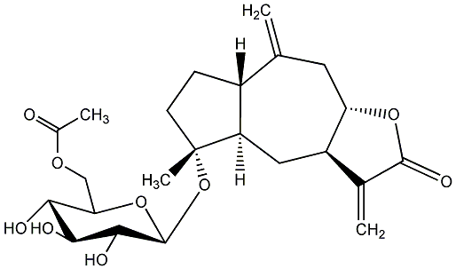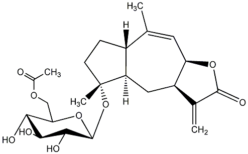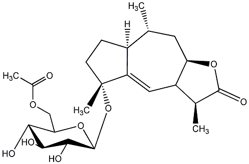 77.61 | C00020932 | [3aR-(3aalpha,4aalpha,5alpha,7abeta,9abeta)]-5-[(6-O-Acetyl-beta-D-glucopyranosyl)oxy]-3a,4,4a,5,6,7,7a,9a-octahydro-5,8-dimethyl-3-methylene-azuleno[6,5-b]furan-2(3H)-one | ![]() |