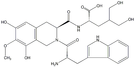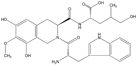 80.65 | C00016353 | TMC 2A L-Tryptophyl-(3S)-1,2,3,4-tetrahydro-6,8-dihydroxy-7-methoxy-3-isoquinolinecarbonyl-5,5'-dihydroxy-L-leucine |