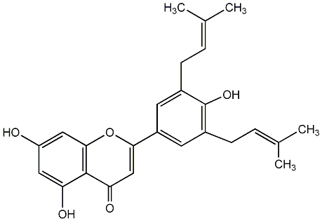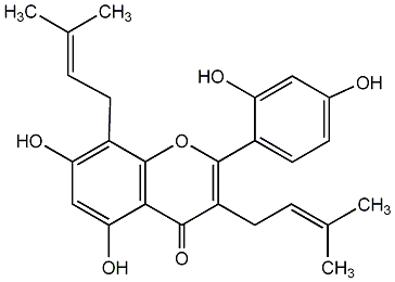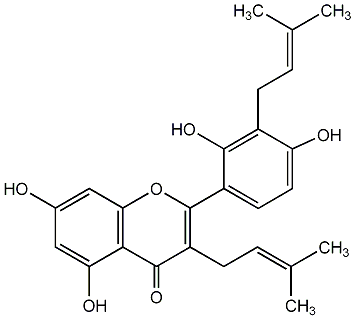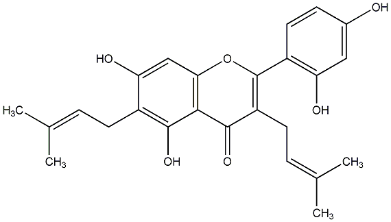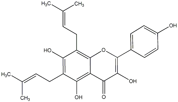 87.69 | C00013517 | 3,5,7-Trihydroxy-2-(4-hydroxyphenyl)-6,8-bis(3-methyl-2-butenyl)-4H-1-benzopyran-4-one | ![]() |