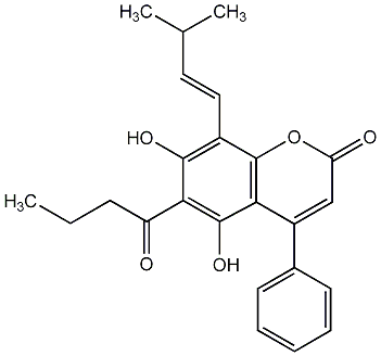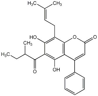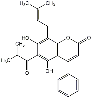 91.94 | C00010220 | Mesuol 5,7-Dihydroxy-8-(3-methylbut-2-enyl)-6-isobutyryl-4-phenylcoumarin |