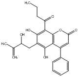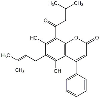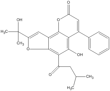 | C00010224 | 1,2-Dihydro-5-hydroxy-2-(1-hydroxy-1-methylethyl)-4-(3-methylbutyryl)-6-phenylfurano[2,3-h][1]benzopyran-8-one | ![]() |