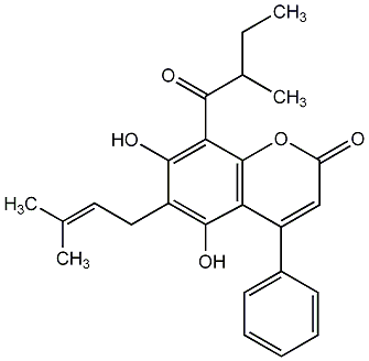 91.94 | C00010219 | 5,7-Dihydroxy-8-(3-methylbut-2-enyl)-6-(2-methylbutyryl)-4-phenylcoumarin | ![]() |