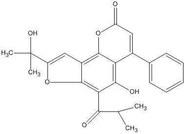 87.30 | C00010226 | 1,2-Dihydro-5-hydroxy-2-(1-hydroxy-1-methylethyl)-4-(isobutyryl)-6-phenylfurano[2,3-h][1]benzopyran-8-one | ![]() |