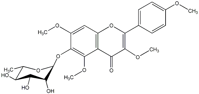 80.72 | C00013827 | 6-Hydroxykaempferol 3,5,7,4'-tetramethyl ether 6-rhamnoside 6-[(6-Deoxy-alpha-L-mannopyranosyl)oxy]-3,5,7-trimethoxy-2-(4-methoxyphenyl)-4H-1-benzopyran-4-one |
