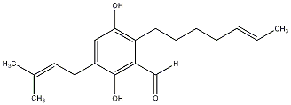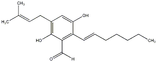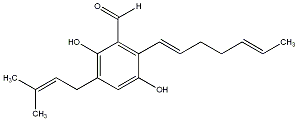 86.67 | C00029426 | 2-(1',5'-Heptadienyl)-3,6-dihydroxy-5-(3''-methyl-2''-butenyl)benzaldehyde | ![]() |