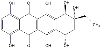 86.89 | C00016343 | beta-Isorhodomycinone [7R-(7alpha,8beta,10beta)]-8-Ethyl-7,8,9,10-tetrahydro-1,4,6,7,8,10,11-heptahydroxy-5,12-naphthacenedione |