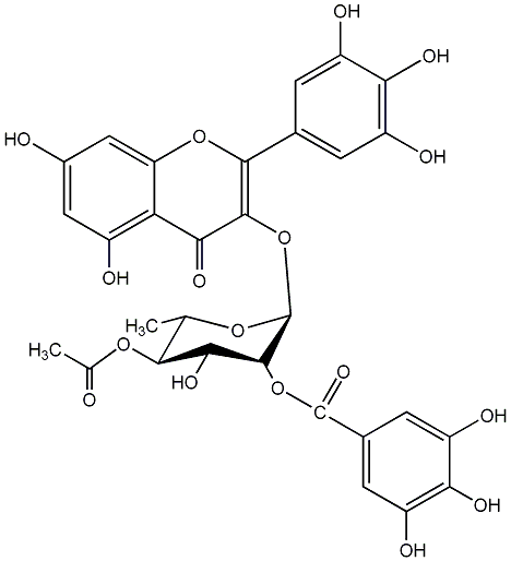 82.98 | C00011157 | Myricetin 3-O-(4''-O-acetyl-2''-O-galloyl)-alpha-L-rhamnopyranoside 3-[[4-O-Acetyl-6-deoxy-2-O-(3,4,5-trihydroxybenzoyl)-alpha-L-mannopyranosyl]oxy]-5,7-dihydroxy-2-(3,4,5-trihydroxyphenyl)-4H-1-benzopyran-4-one |