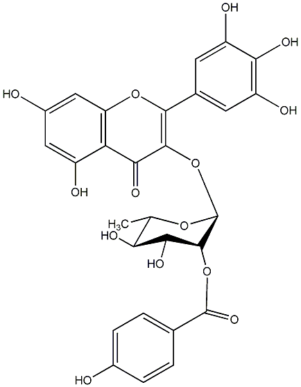 81.91 | C00013970 | Myricetin 3-(2''-p-hydroxybenzoylrhamnoside) 3-[[6-Deoxy-2-O-(4-hydroxybenzoyl)-alpha-L-mannopyranosyl]oxy]-5,7-dihydroxy-2-(3,4,5-trihydroxyphenyl)-4H-1-benzopyran-4-one |