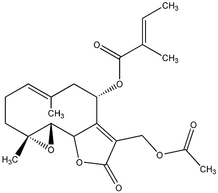 90.00 | C00012952 | [3aR-[3aalpha,4alpha(E),6beta,8alpha,8aalpha,9aalpha]]-8-(acetyloxy)-2,3,3a,4,6,7,8,8a,9,9a-Decahydro-6-hydroxy-5,8a-dimethyl-3-methylene-2-oxonaphtho[2,3-b]furan-4-yl ester 2-methyl-2-butenoic acid | ![]() |