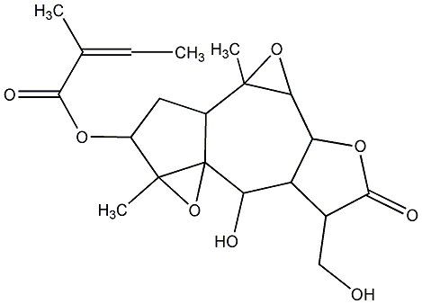 88.33 | C00011990 | [3aS-[3aalpha,4beta(Z),5beta,6alpha(S*),7alpha,7abeta]]-5-(1-Formylethenyl)octahydro-7-hydroxy-6-methyl-3-methylene-6-oxiranyl-2-oxo-4-benzofuranyl ester 2-methyl-2-butenoic acid | ![]() |