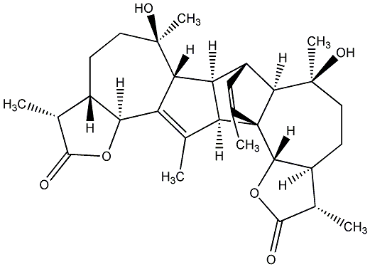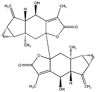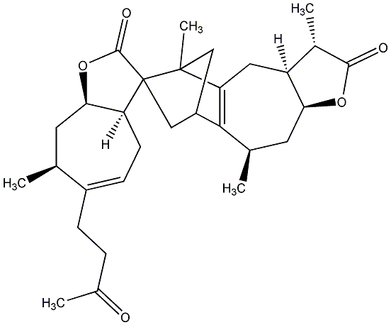 87.65 | C00012902 | Fruticolide (sesquiterpene dimer) [3aR-[3aalpha,4aalpha,7alpha,8abeta,9aalpha,10S*(3'aR*,8'aS*,9'aR*)]]-3a,3'a,8a,8'a,9,9',9a,9'a-Octahydro-5,5',8a,8'a-tetramethyl-3-methylenespiro[4H-4a,7-ethanonaphtho[2,3-b]furan-10,3'(2'H)-naphtho[2,3-b]furan]-2,2',6',8(3H,4'H,7H)-tetrone |