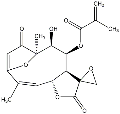 92.59 | C00011989 | [3aS-[3aalpha,4beta,5beta,6alpha(S*),7alpha,7abeta]]-5-(1-Formylethenyl)octahydro-7-hydroxy-6-methyl-3-methylene-6-oxiranyl-2-oxo-4-benzofuranyl ester 2-methyl-2-propenoic acid | ![]() |