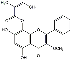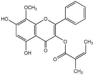 86.21 | C00013547 | 5,7,8-Trihydroxy-3-methoxyflavone 8-((E)-2-methylbut-2-enoate) (2E)-5,7-Dihydroxy-3-methoxy-4-oxo-2-phenyl-4H-1-benzopyran-8-yl ester 2-methyl-2-butenoic acid |