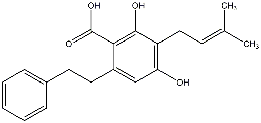 90.00 | C00015266 | 2-Carboxy-3,5-dihydroxy-4-(3-methyl-2-butenyl)bibenzyl | ![]() |