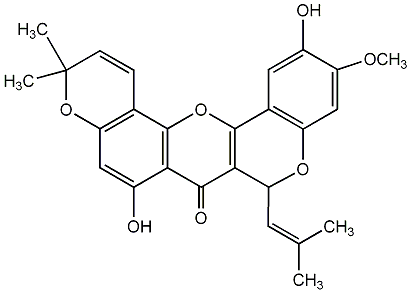 90.00 | C00004100 | Cycloaltilisin (+)-2,8,10-Trihydroxy-3-methoxy-11-(3-methyl-2-butenyl)-6-(2-methyl-1-propenyl)-6H,7H-[1]benzopyrano[4,3-b][1]benzopyran-7-one |