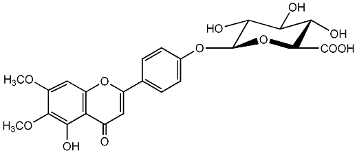 97.26 | C00004491 | Scutellarein 6,7-dimethyl ether 4'-glucuronide 4-(5-Hydroxy-6,7-dimethoxy-4-oxo-4H-1-benzopyran-2-yl)phenyl beta-D-glucopyranosiduronic acid |