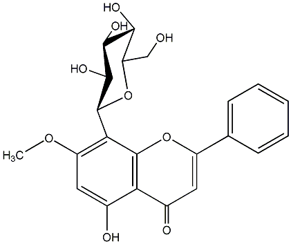 94.03 | C00013605 | Echioidinin 5-O-glucoside Echioidinin 5-O-glucopyranoside 5,2'-Dihydroxy-7-methoxyflavone 5-glucoside 5-(beta-D-Glucopyranosyloxy)-2-(2-hydroxyphenyl)-7-methoxy-4H-1-benzopyran-4-one |