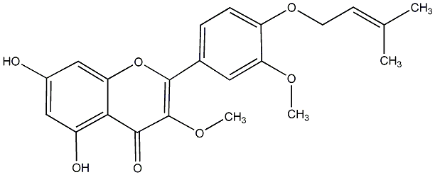 90.00 | C00013526 | 5,7-Dihydroxy-3-methoxy-2-[3-methoxy-4-[(3-methyl-2-butenyl)oxy]phenyl]-4H-1-benzopyran-4-one | ![]() |