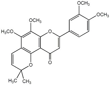92.31 | C00013531 | 2-(1,3-Benzodioxol-5-yl)-3,5,6,8-tetramethoxy-7-[(3-methyl-2-butenyl)oxy]-4H-1-benzopyran-4-one | ![]() |