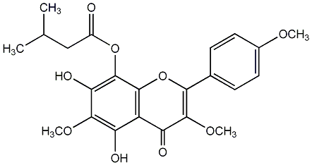 91.55 | C00004934 | 5,7,8-Trihydroxy-3,6,4'-trimethoxy-flavone 8-isovalerate | ![]() |
