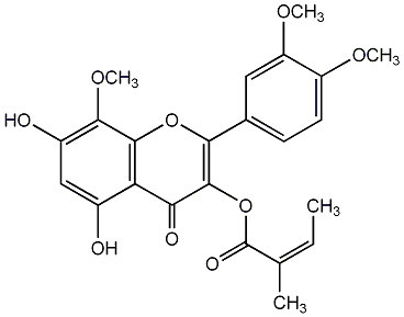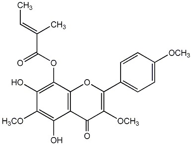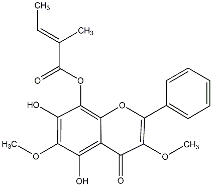 90.77 | C00013544 | (2E)-5,7-Dihydroxy-3,6-dimethoxy-4-oxo-2-phenyl-4H-1-benzopyran-8-yl ester 2-methyl-2-butenoic acid | ![]() |