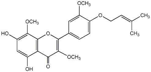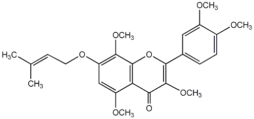 97.01 | C00005024 | 4'-Hydroxy-3,5,8,3'-tetramethoxy-7-prenyloxyflavone | ![]() |