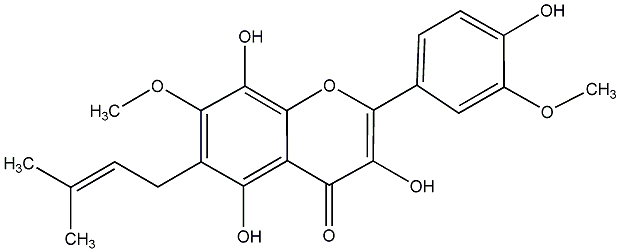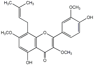 89.23 | C00005014 | 5,3',4'-Trihydroxy-3,7-dimethoxy-6-prenylflavone 6-Prenylquercetin 3-methyl ether 2-(3,4-Dihydroxyphenyl)-5,7-dihydroxy-3-methoxy-6-(3-methyl-2-butenyl)-4H-1-benzopyran-4-one |