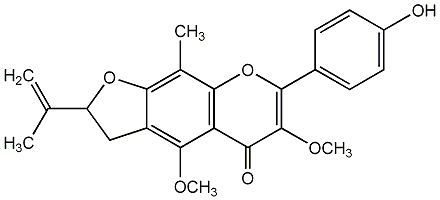 90.00 | C00005011 | 5,7,4'-Trihydroxy-3,8-dimethoxy-6-prenylflavone 6-Prenylherbacetin 3,8-dimethyl ether 5,7-Dihydroxy-2-(4-hydroxyphenyl)-3,8-dimethoxy-6-(3-methyl-2-butenyl)-4H-1-benzopyran-4-one |