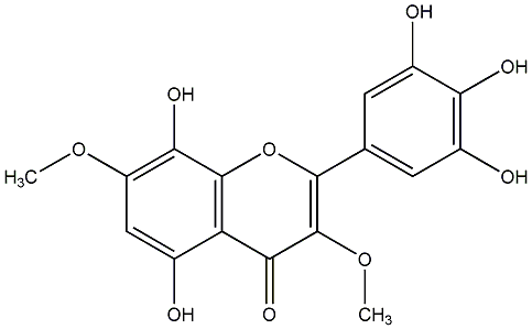 90.91 | C00004770 | Myricetin 3,7,3'-trimethyl ether 3,7,3'-Trimethoxy-5,4',5'-trihydroxyflavone 2-(3,4-Dihydroxy-5-methoxyphenyl)-5-hydroxy-3,7-dimethoxy-4H-1-benzopyran-4-one |