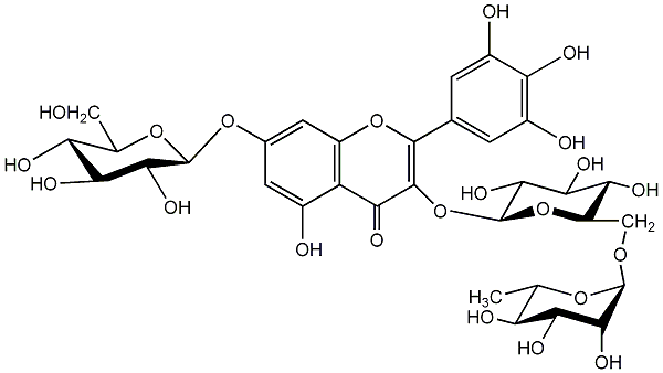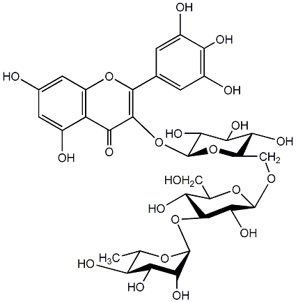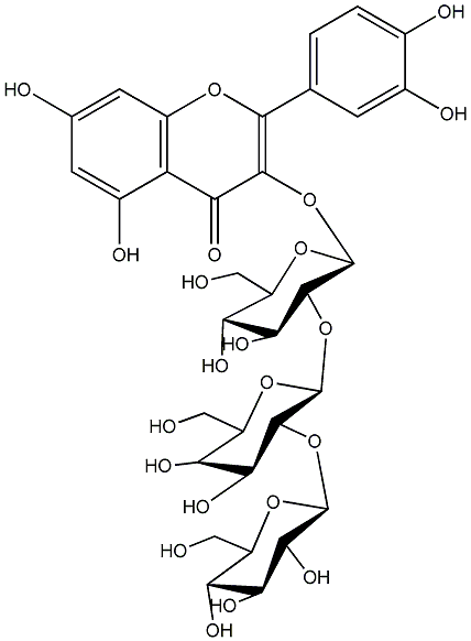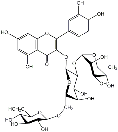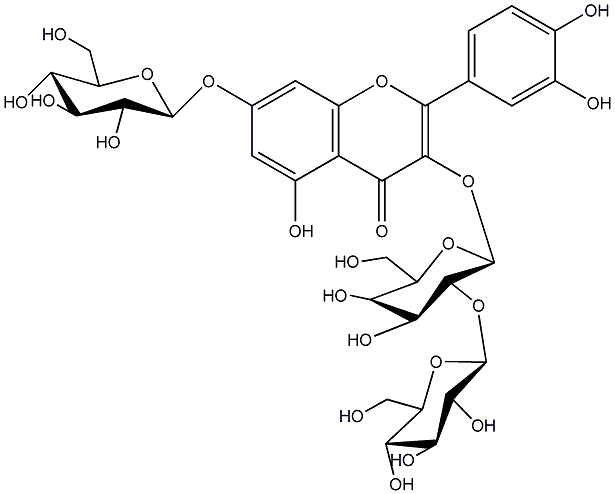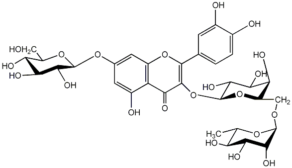 97.35 | C00005439 | Quercetin 3-glucosyl-(1->3)-rhamnosyl-(1->6)-galactoside | ![]() |