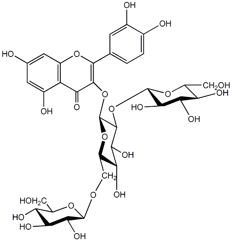 97.39 | C00013848 | Quercetin 3-glucosyl-(1->2)-galactosyl-(1->2)-glucoside 3-[(O-beta-D-Glucopyranosyl-(1->2)-O-beta-D-galactopyranosyl-(1->2)-beta-D-glucopyranosyl)oxy]-2-(3,4-dihydroxyphenyl)-5,7-dihydroxy-4H-1-benzopyran-4-one |