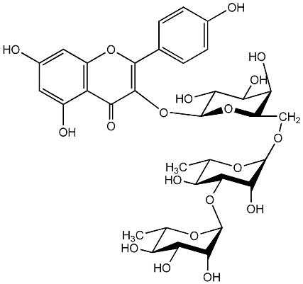96.40 | C00013751 | Kaempferol 3-rhamnosyl-(1->2)-[glucosyl-(1->4)-glucoside] | ![]() |