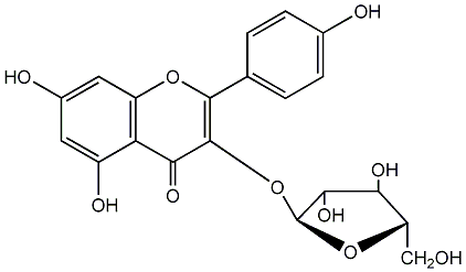 95.38 | C00005132 | Juglanin Kaempferol 3-O-arabinoside (-)-Kaempferol 3-O-arabinoside Kaempferol 3-O-alpha-L-arabinofuranoside |
