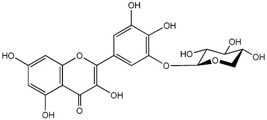 100.00 | C00013833 | Quercetin 3-O-alpha-D-arabinopyranoside 3-(alpha-D-Arabinopyranosyloxy)-2-(3,4-dihydroxyphenyl)-5,7-dihydroxy-4H-1-benzopyran-4-one |