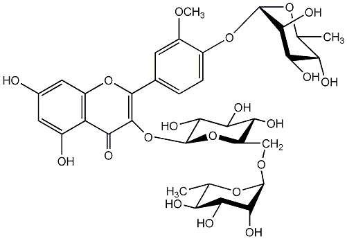 94.69 | C00005570 | Isorhamnetin 3-rhamnosyl-(1->4)-rhamnosyl-(1->6)glucoside | ![]() |