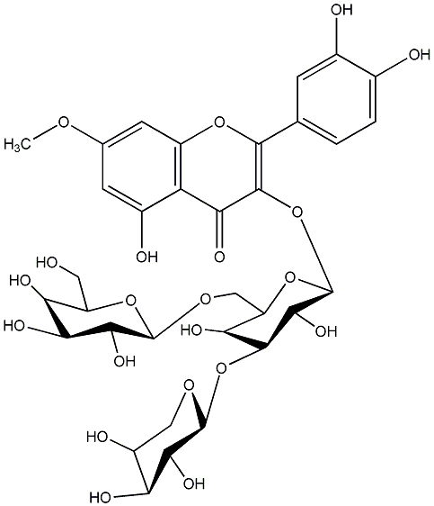 95.50 | C00013915 | Isorhamnetin 3-xylosyl-(1->3)-rhamnosyl-(1->6)-glucoside Quercetin 3'-methyl ether 3-xylosyl-(1->3)-rhamnosyl-(1->6)-glucoside |