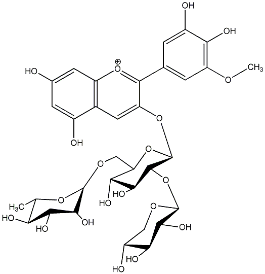 94.59 | C00014863 | Petunidin 3-[6-(rhamnosyl)-2-(xylosyl)glucoside] | ![]() |