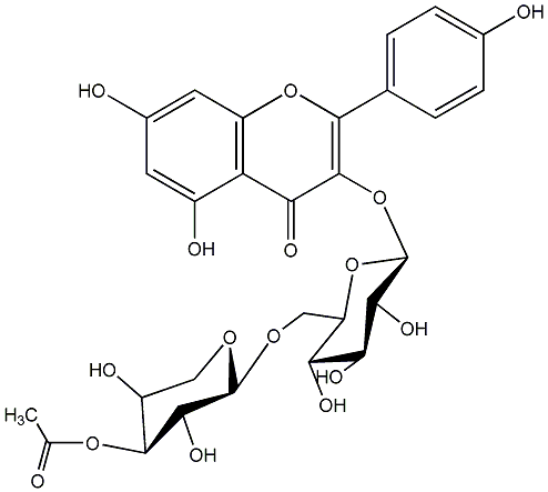 | C00013785 | Kaempferol 3-(3''-acetyl-alpha-L-arabinopyranosyl)-(1->6)-glucoside 3-[[6-O-(3-O-Acetyl-alpha-L-arabinopyranosyl)-beta-D-glucopyranosyl]oxy]-5,7-dihydroxy-2-(4-hydroxyphenyl)-4H-1-benzopyran-4-one |