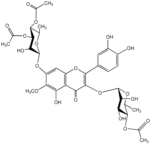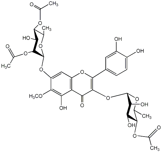 90.57 | C00005975 | Quercetin 3-(2''',3''',5'''-triacetyl-alpha-L-arabinofuranosyl)(1->6)-glucoside | ![]() |