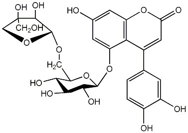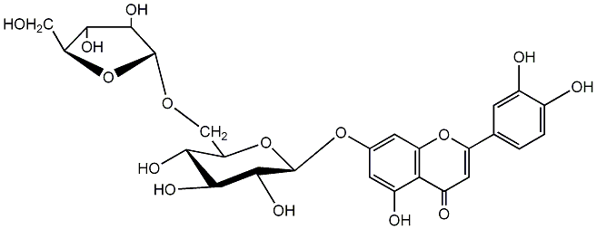 93.02 | C00013660 | Luteolin 7-apiosyl(1->6)glucoside 7-[(6-O-D-Apio-beta-D-furanosyl-beta-D-glucopyranosyl)oxy]-2-(3,4-dihydroxyphenyl)-5-hydroxy-4H-1-benzopyran-4-one |