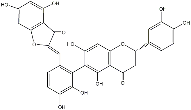 91.01 | C00014710 | [2R-[2alpha,3beta(R*)]]-3-[2,3-Dihydro-2,4,6-trihydroxy-2-[(4-hydroxyphenyl)methyl]-3-oxo-7-benzofuranyl]-2,3-dihydro-5,7-dihydroxy-2-(4-hydroxyphenyl)-4H-1-benzopyran-4-one | ![]() |