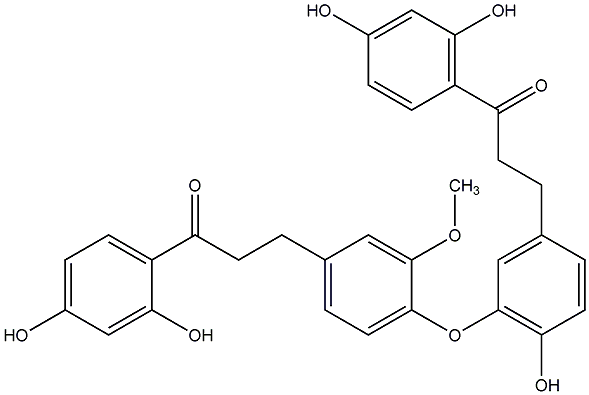 85.37 | C00014519 | Rhuschalcone III (2E)-1-(2,4-Dihydroxyphenyl)-3-[4-[4-hydroxy-5-[(2E)-3-(4-hydroxyphenyl)-1-oxo-2-propenyl]-2-methoxyphenoxy]phenyl]-2-propen-1-one |
