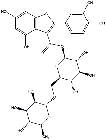 96.67 | C00005413 | Quercetin 3-rutinoside Rutin Quercetin 3-O-rutinoside Birutan Quercetin 3-O-alpha-L-rhamnopyranosyl-(1->6)-beta-D-glucopyranoside Quercetin 3-O-beta-rutinoside (+)-Quercetin 3-O-beta-rutinoside (+)-Quercetin 3-O-rutinoside 3,3',4',5,7-Pentahydroxyflavone 3-rutinoside 3-Rutinosylquercetin Rutoside |