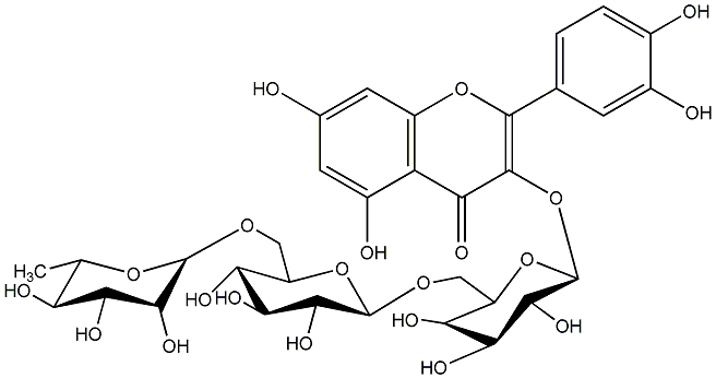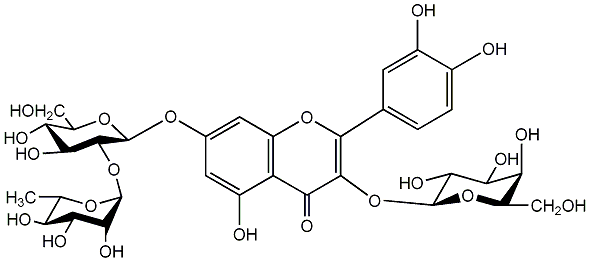 97.35 | C00005439 | Quercetin 3-glucosyl-(1->3)-rhamnosyl-(1->6)-galactoside | ![]() |